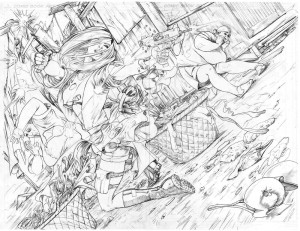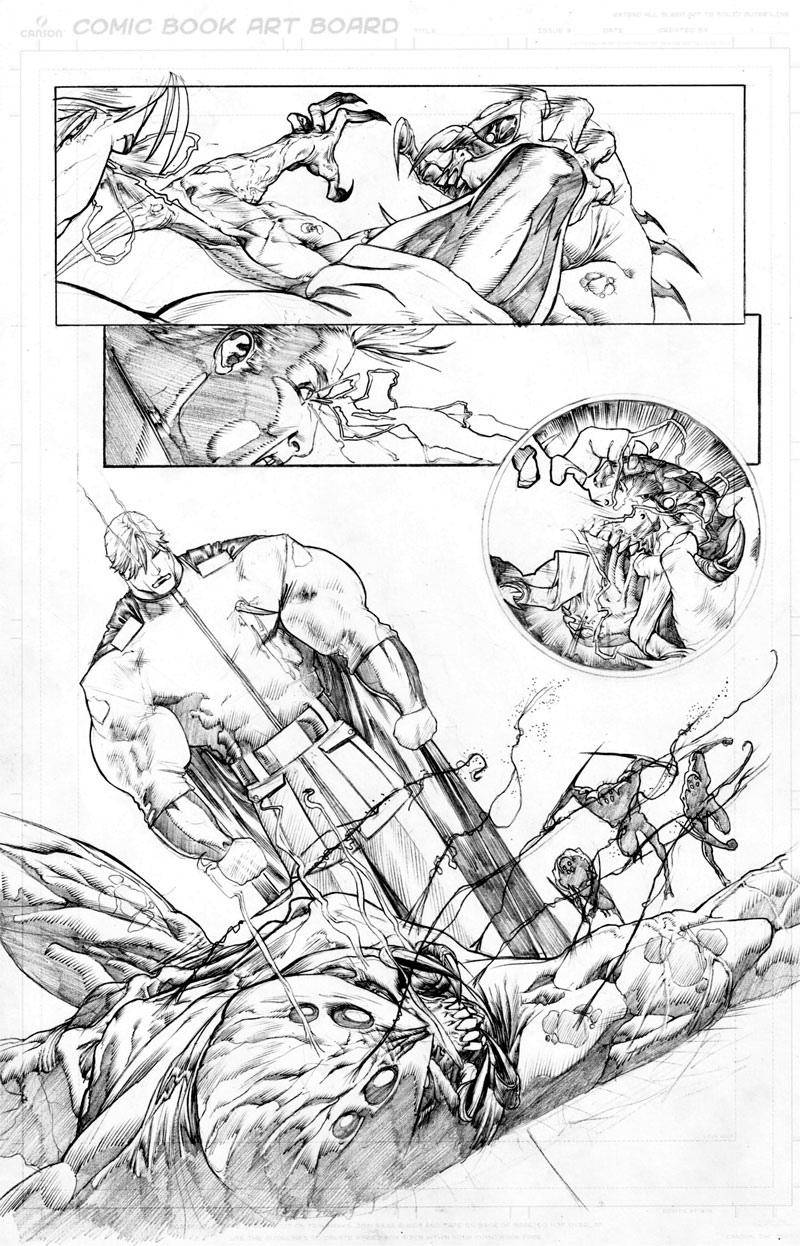Arpil 2012: I did these pages after learning of the Skull Kickers contest to have new talent fill in for the creative team for issue 18 of the series. I really enjoyed working on these pages and I dig the characters too so this was a lot of fun. After the contest was complete, I received a really nice email from Jim Zub informing me that I didn’t win. I thought that was really cool of him as I was expecting that personal touch for the end of the competition. If you guys aren’t reading Skull Kickers, you should check it out, it’s a lot of big fun!